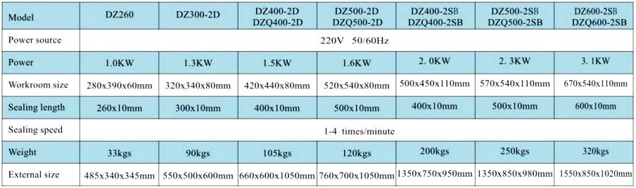 This series of vacuum packaging machine is featured by automatic processing of vacuuming, sealing and printing at one time, which is used in vacuum packaging of food, pharmaceutical, aquatic, chemical and electronic industries.